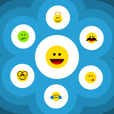 顔 涙 冷や汗と他のベクトル オブジェクトは 寄り目のセットをフラット アイコン式 喜び 笑顔 顔文字要素も含まれています のイラスト素材 ベクタ Image